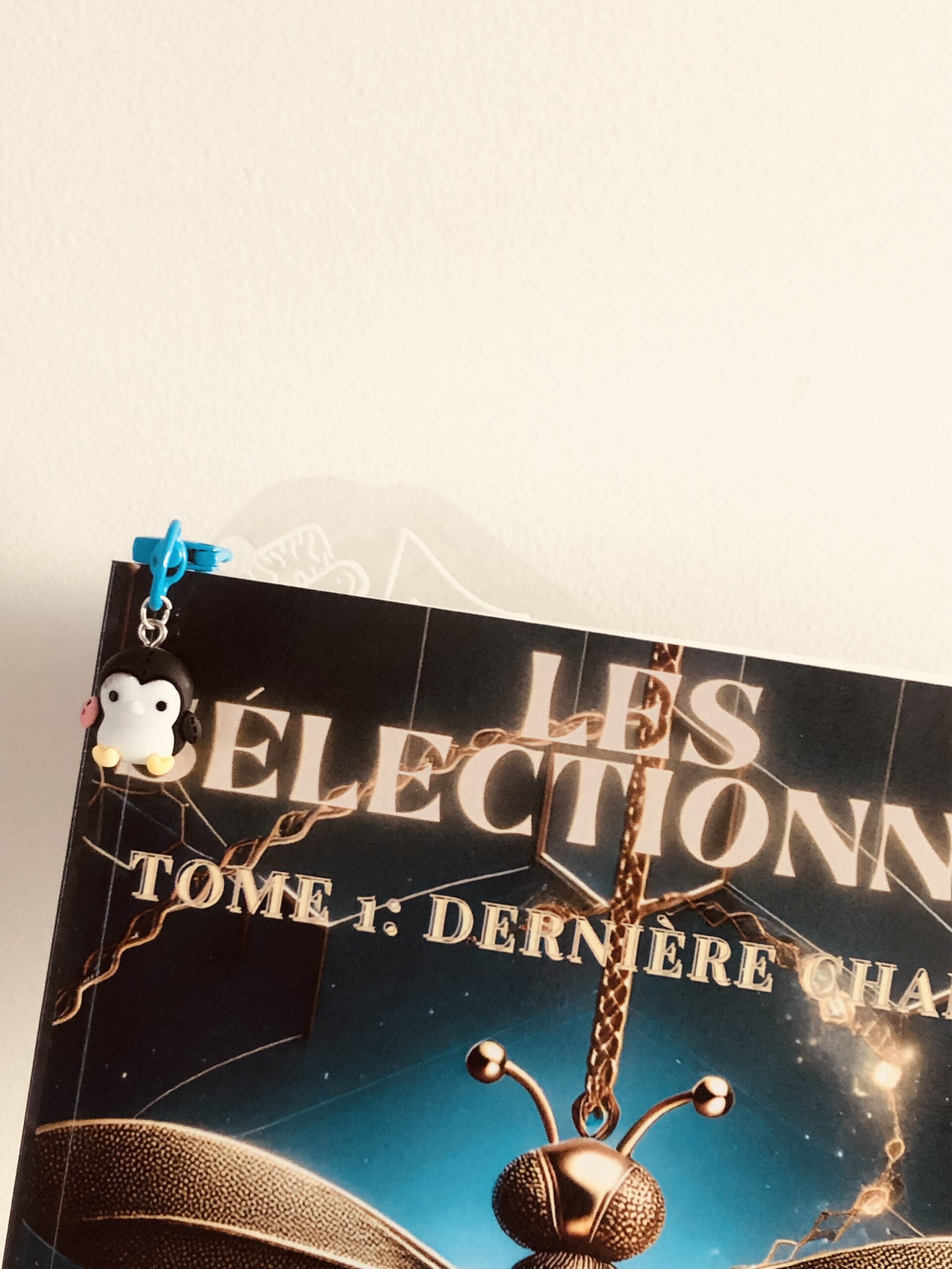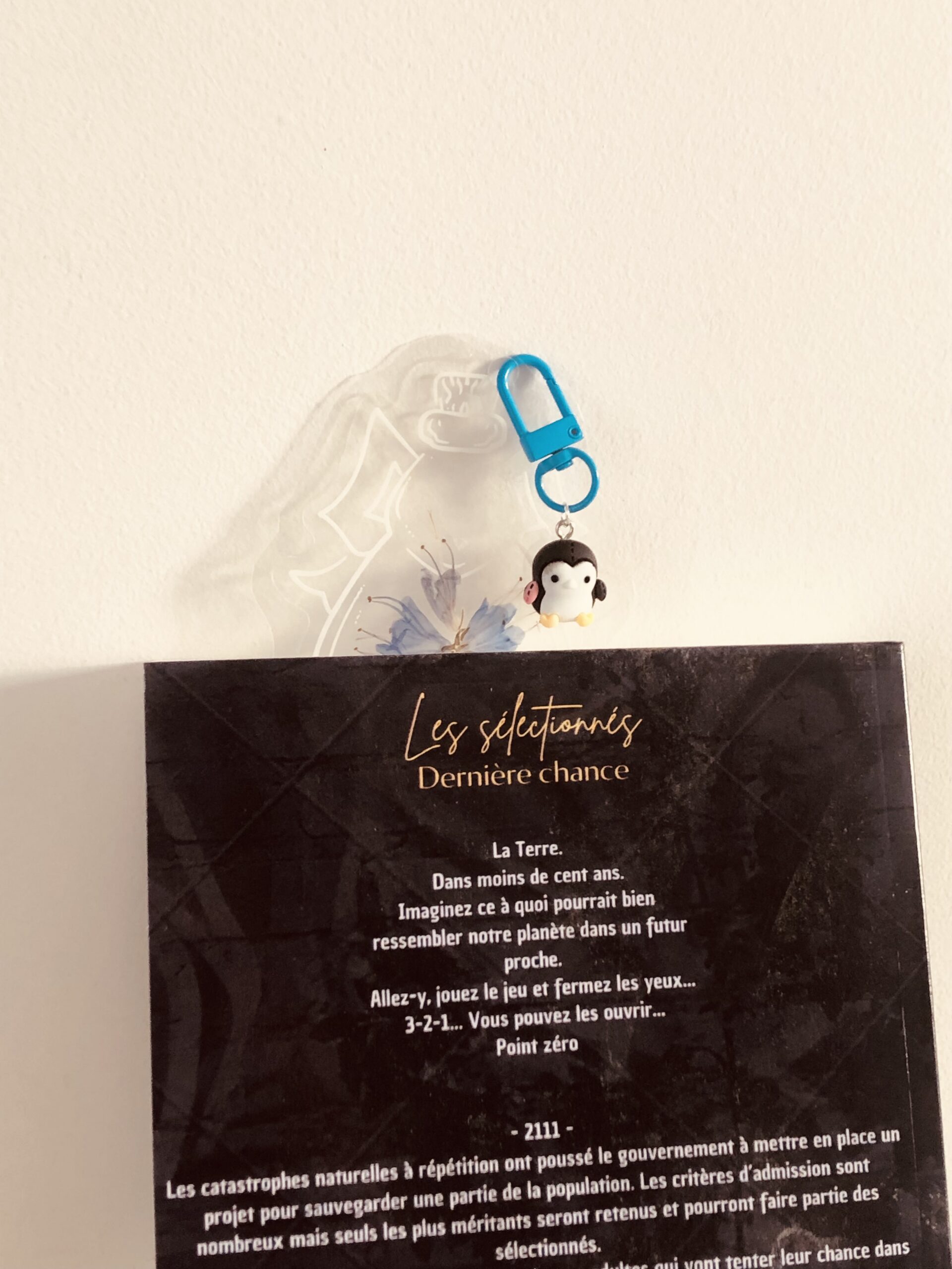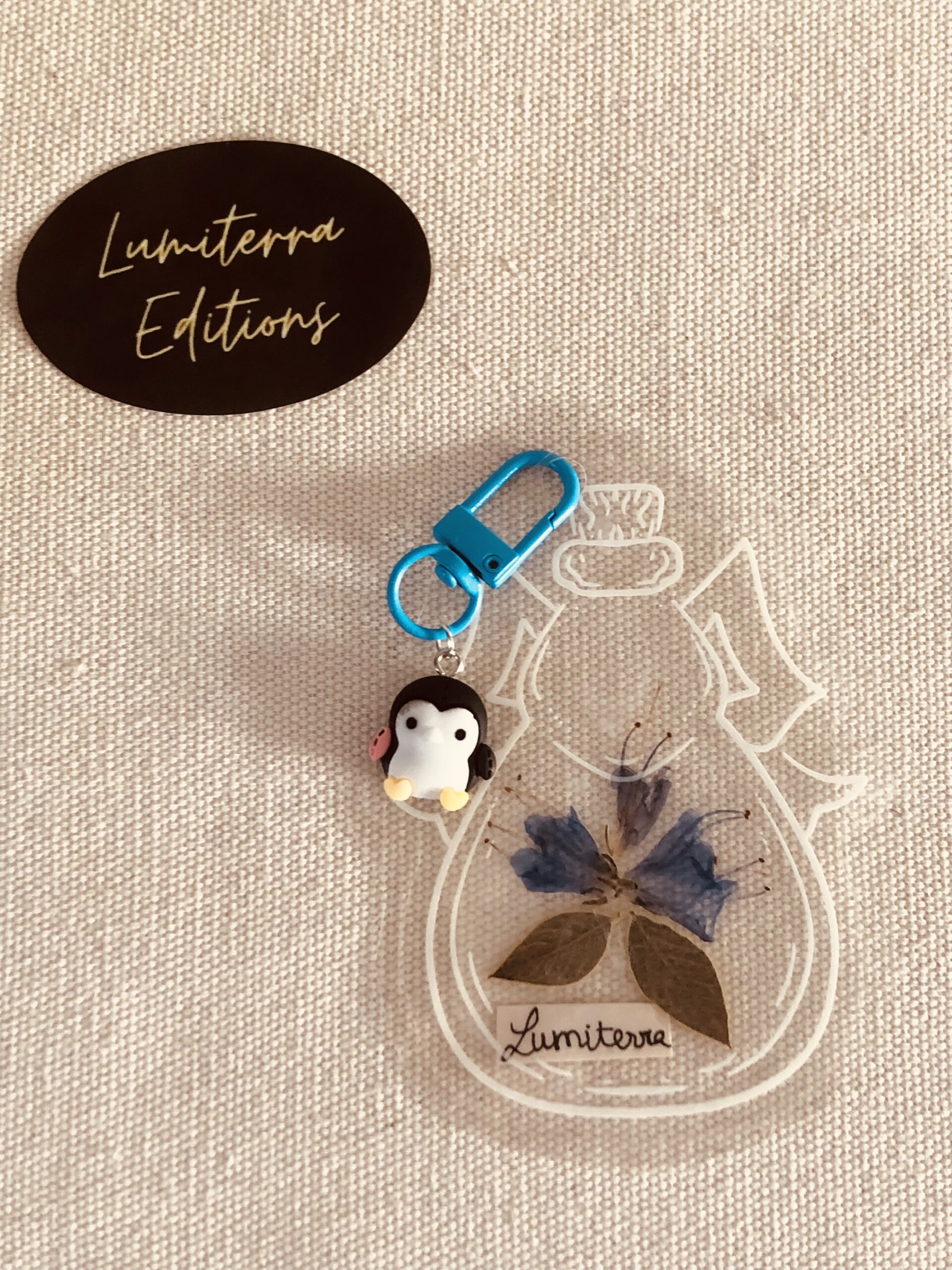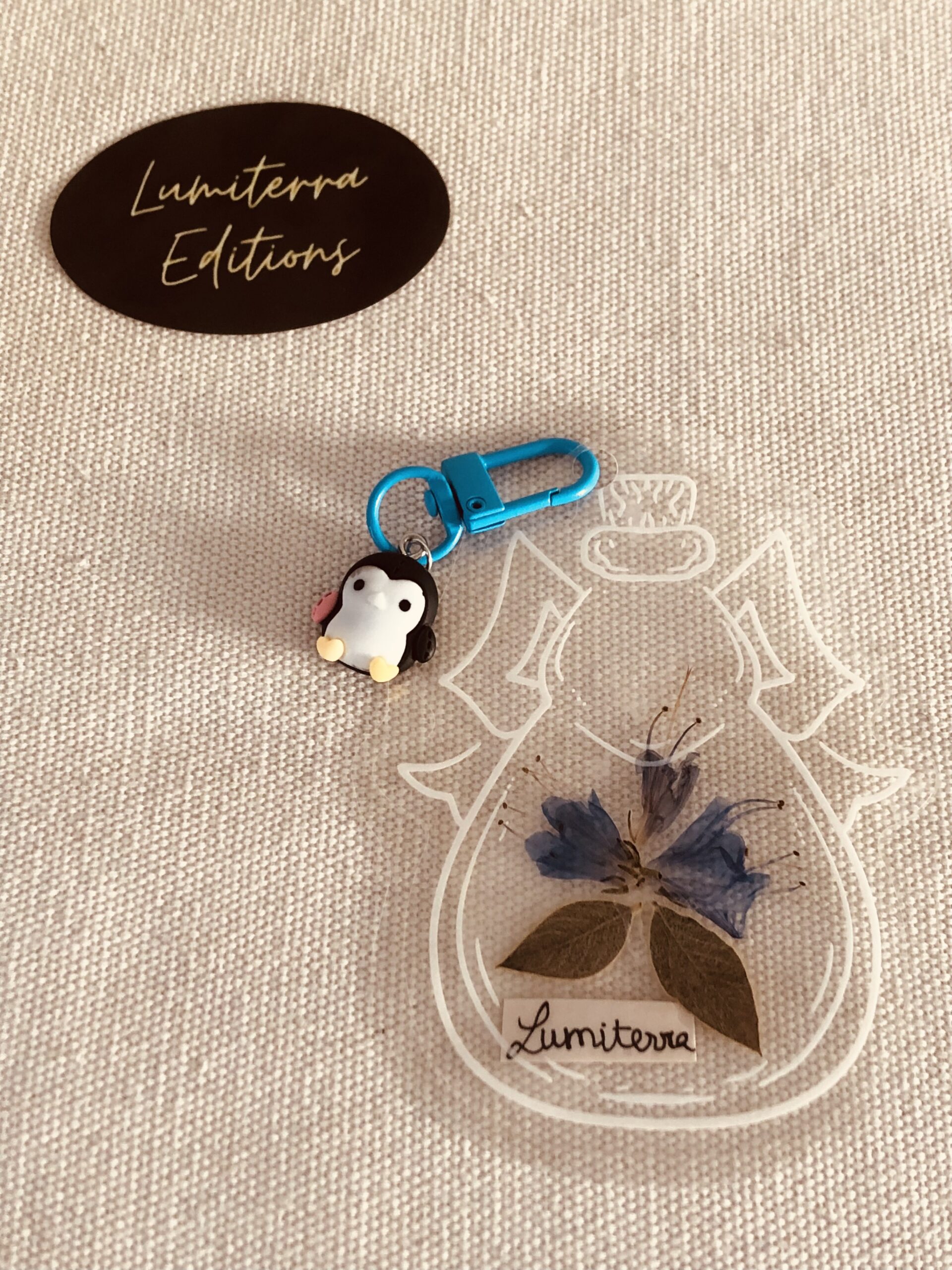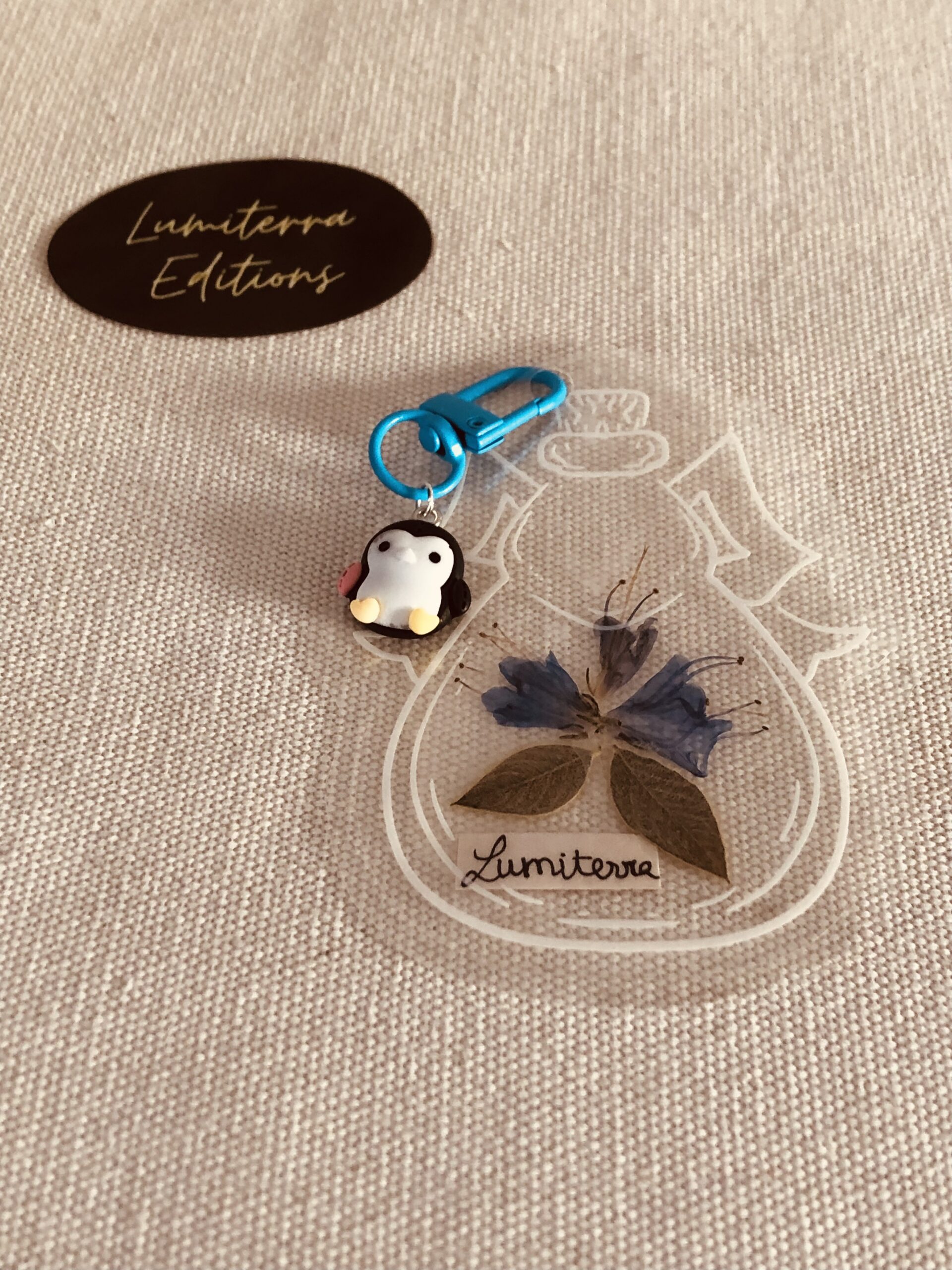 🌿 Marque‑page Vegetal Charm – Fleurs naturelles bleues & charm pingouin