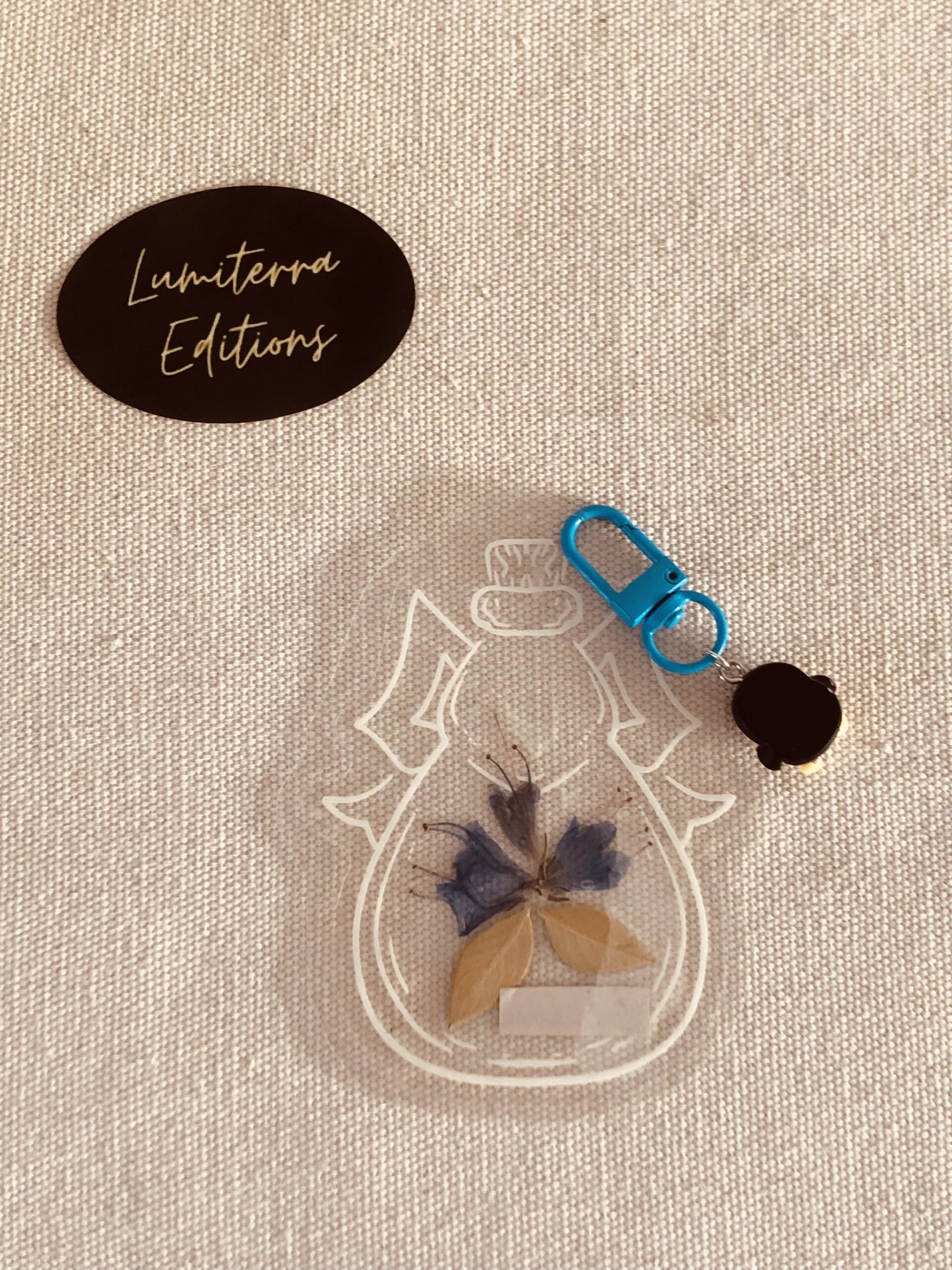 Chaque pièce renferme de véritables fleurs séchées délicatement mises en valeur dans une capsule transparente en forme de petit flacon. Le tout est sublimé par un charm pour apporter une touche élégante et se glisse subtilement dans tous vos livres.
