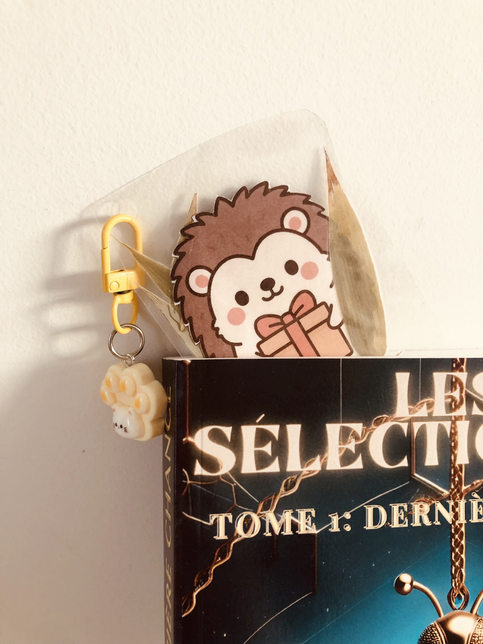 🌿 Marque‑page Vegetal Charm – Hérisson cadeau & patte de chat