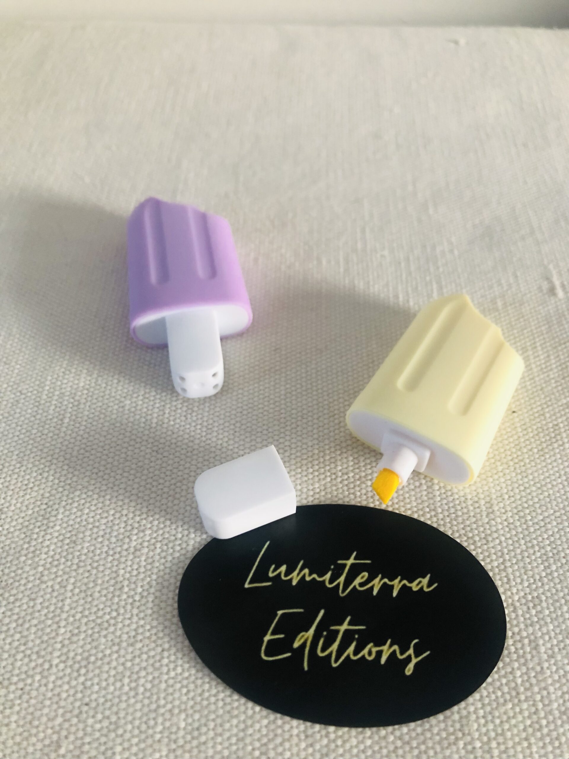 Des surligneurs aussi adorables que gourmands, parfaits pour apporter une touche de fantaisie à toutes vos notes. Leur forme d’esquimau en fait un objet de papeterie ludique et ultra‑tendance, idéal pour les enfants, les étudiants et les amoureux de fournitures kawaii.